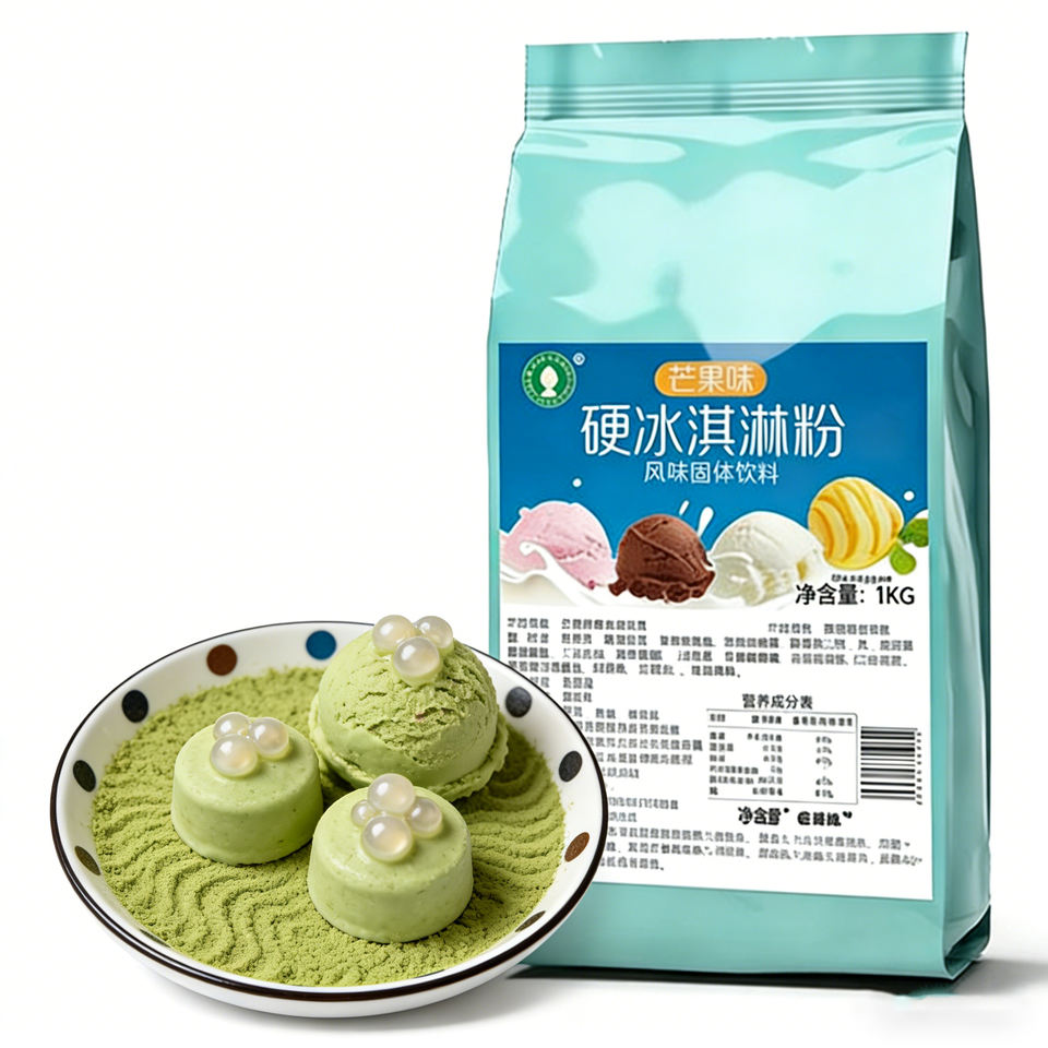 Poudre de crème glacée dure professionnelle saveur mangue, style tropical, en sachet, pour service de buffet hôtelier, OEM, livraison mondiale, fiable