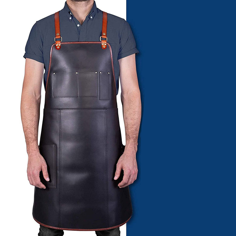 Tablier professionnel en cuir PU robuste taille réglable pour hommes pour la cuisine de barbier utilisation de qualité supérieure pour la cuisson des aliments