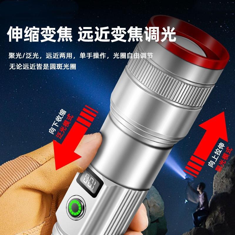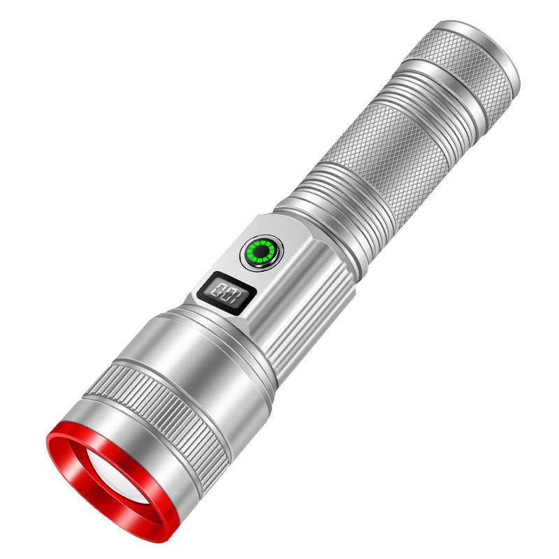 Lampe torche LED professionnelle haute puissance avec affichage numérique, rechargeable, longue portée, éclairage d'urgence extérieur, blanc