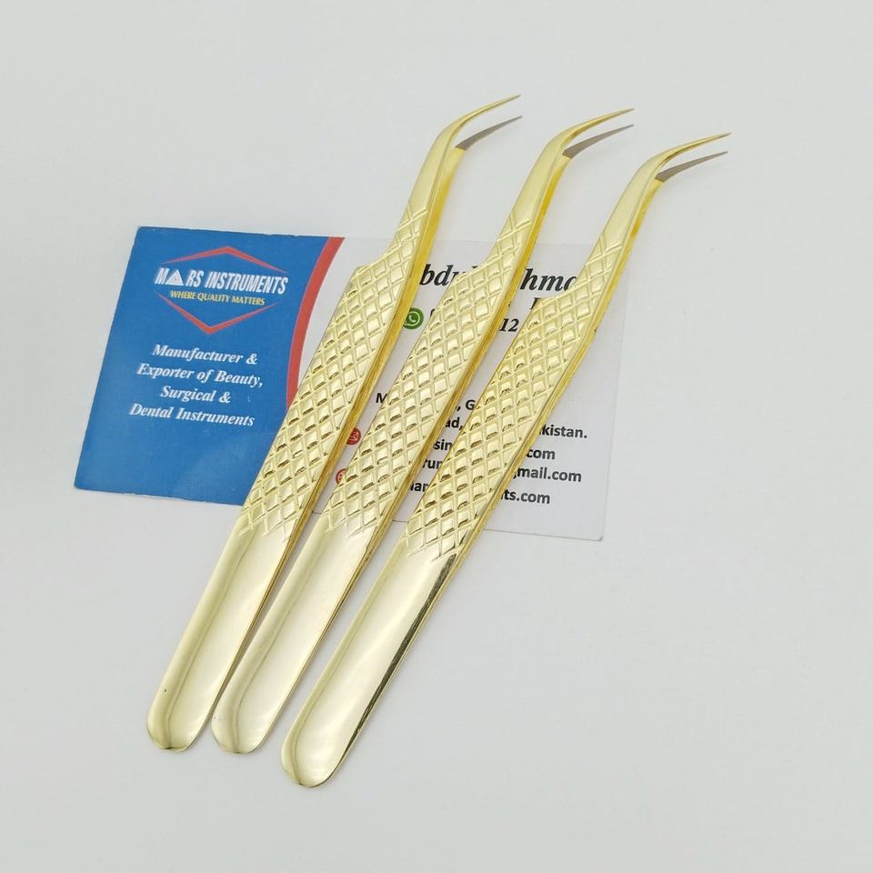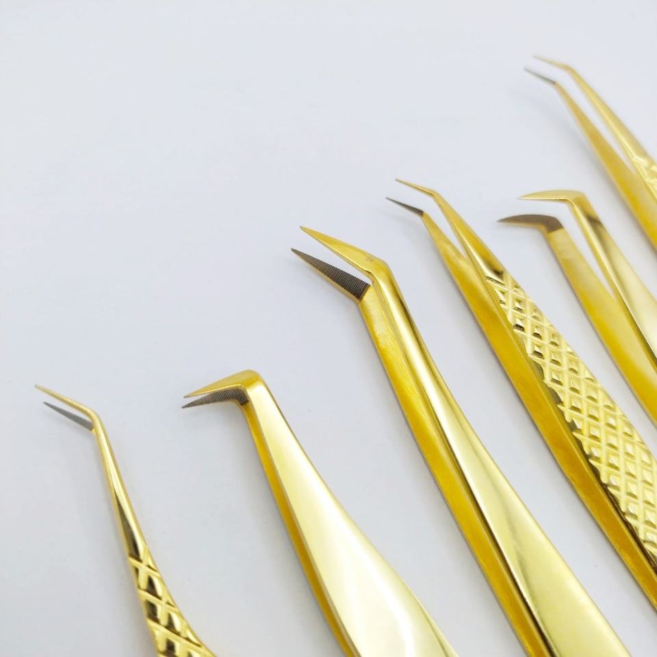Pince à épiler professionnelle d'extension de cils de haute précision pointe en fibre d'or de marque personnalisée en acier inoxydable écologique personnalisé