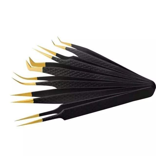 Pince à épiler professionnelle en acier inoxydable de haute précision, anti-magnétique, avec poignée confortable, pointe lisse, longueur 10 mm, noir mat
