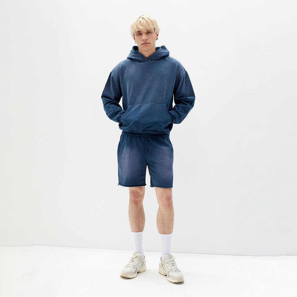 Short de survêtement professionnel de haute qualité délavé à l'acide 100% coton taille moyenne Style de rue solide broderie Service OEM