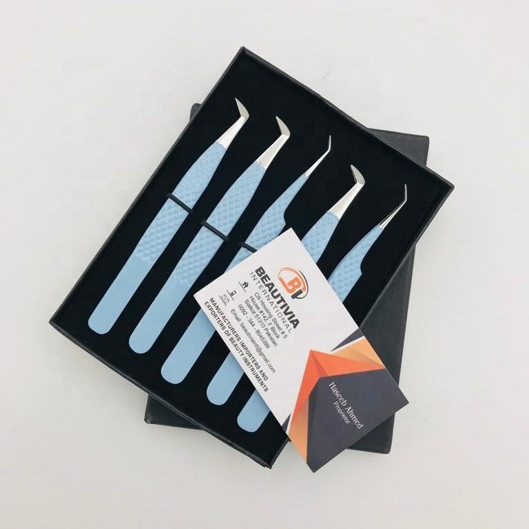 Pince à épiler d'extension de cils en acier inoxydable enduit bleu bébé professionnel de haute qualité outil de beauté arrondi durabilité pointu