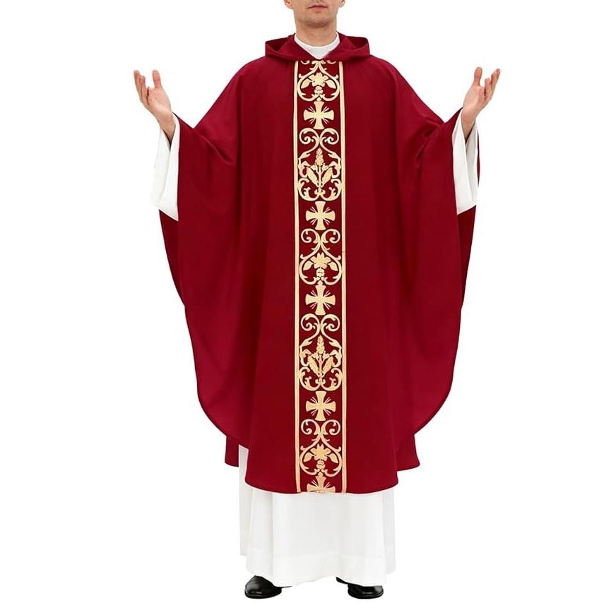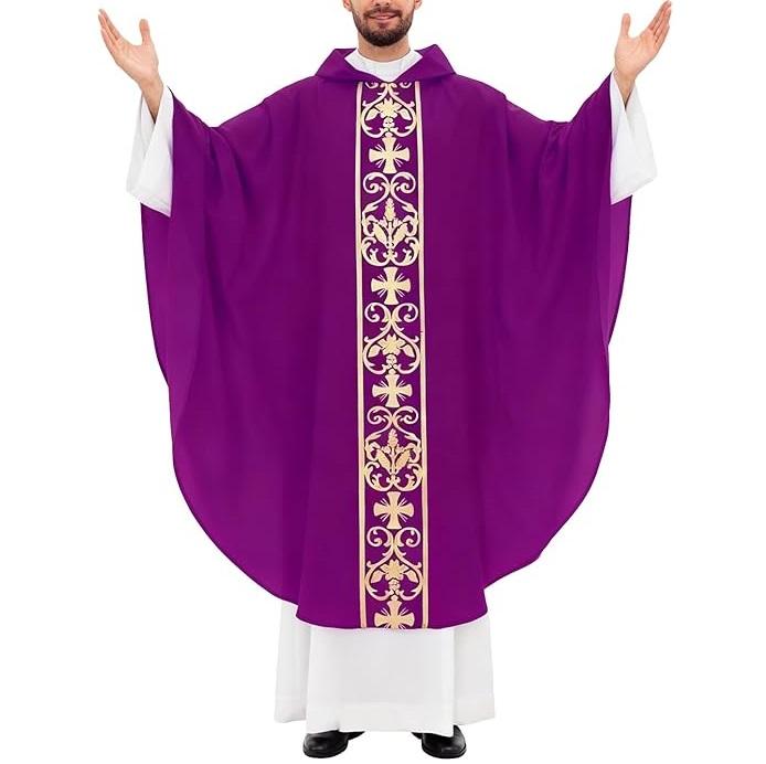 Chasuble professionnelle de haute qualité brodée blanche, vêtements liturgiques personnalisables, service OEM, fabriquée au Pakistan, robe de clergé