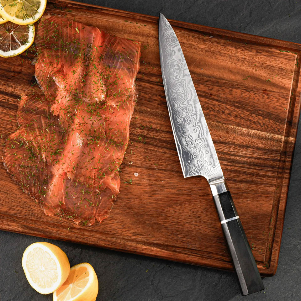 Couteau de chef professionnel de haute qualité en acier Damas avec manche en bois durable, fait main, compatible lave-vaisselle, écologique