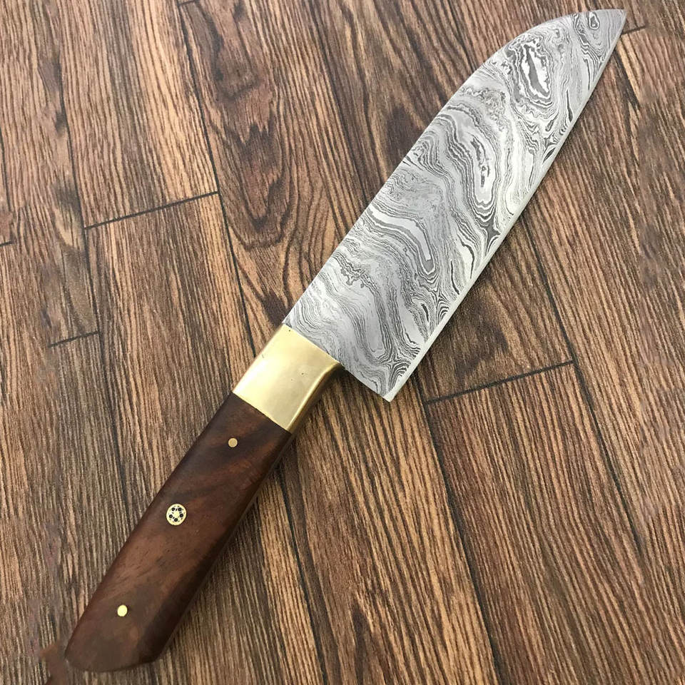 Couteau de Chef Professionnel en Acier Damas de Haute Qualité, Fait Main, Écologique, Durable, Manche en Bois pour Droitier