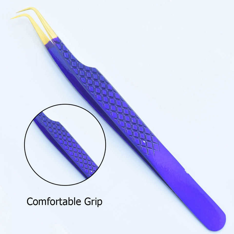 Extensions professionnelles de pince à cils en acier inoxydable de haute qualité avec poignée en diamant bleu pointues pour pince à épiler à 90 degrés de beauté