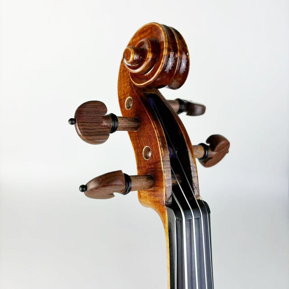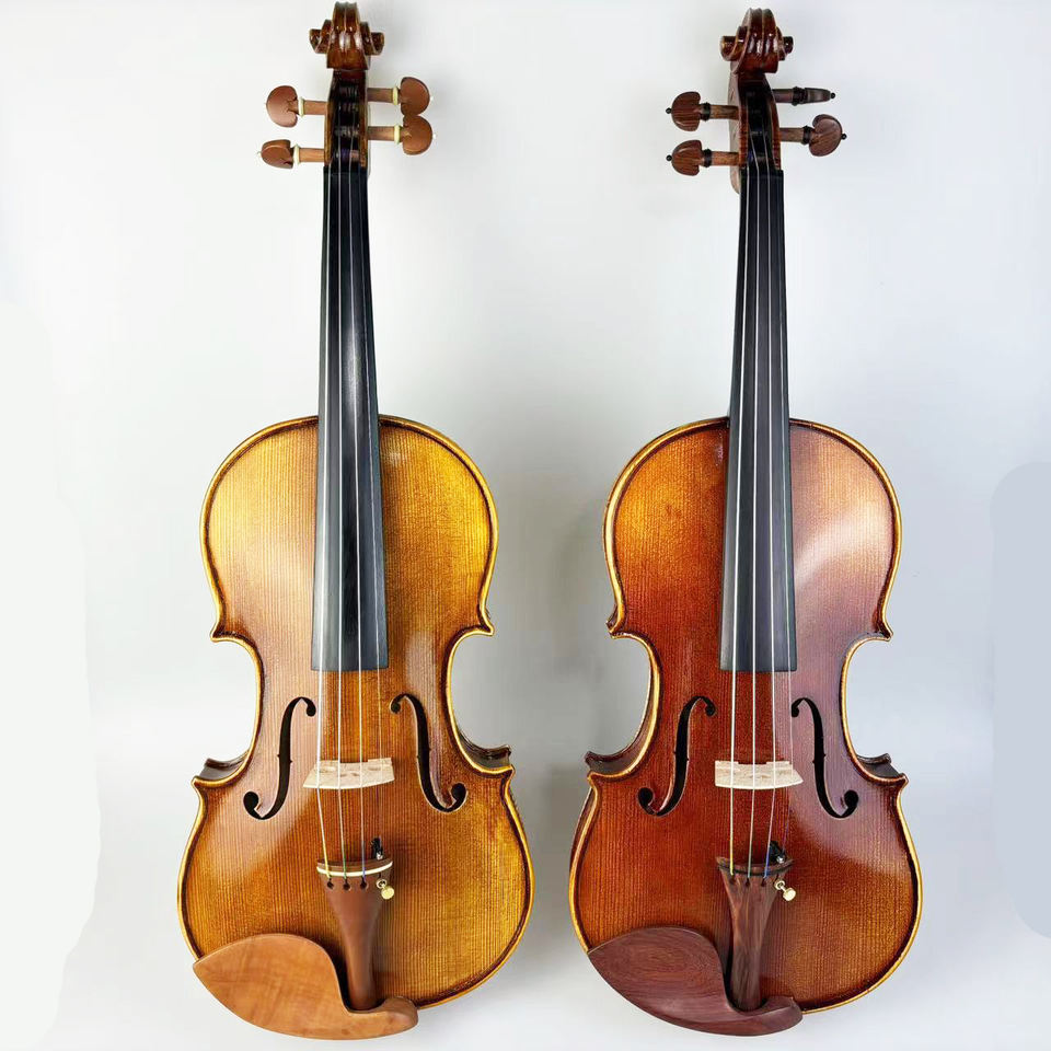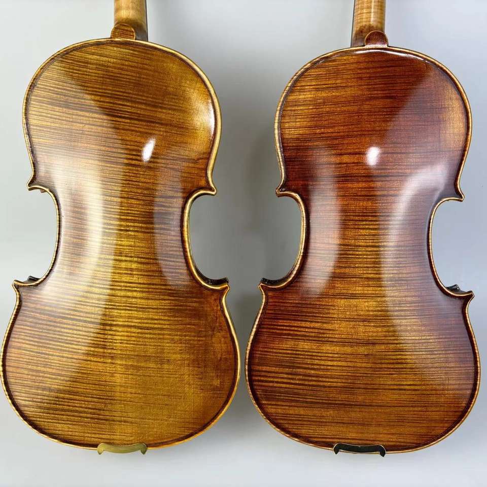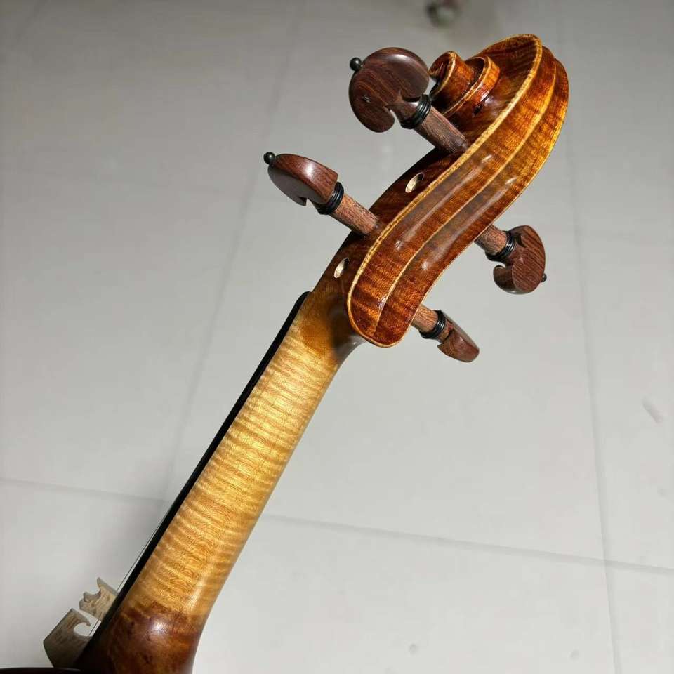 Violon alto professionnel de haute qualité avec table en épicéa massif et éclisses en érable flammé, cordes en acier, finition antique marron, étui en mousse oblongue