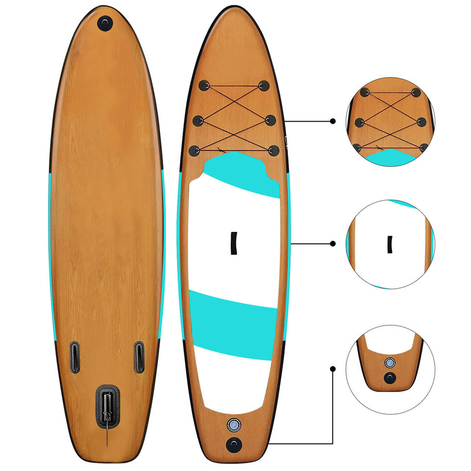 Planche à pagaie gonflable professionnelle en PVC à grain de bois de haute qualité, ensemble de planche de surf debout personnalisé pour le sport marin