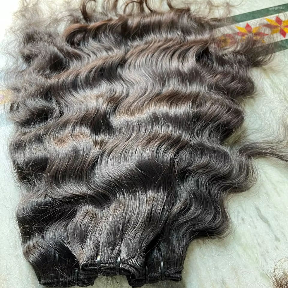 Extensions de cheveux humains vierges Remy naturelles indiennes ondulées professionnelles, 30 pouces, noires, double trame machine, haute qualité