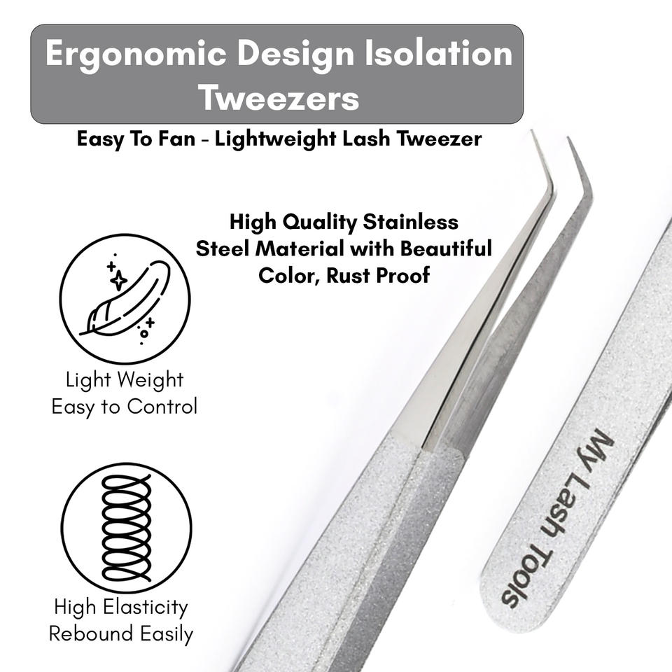 Pince à épiler professionnelle isolante pour extensions de cils, pointe en fibre pour volume, extensions de cils en acier inoxydable, prise parfaite et pointe lisse