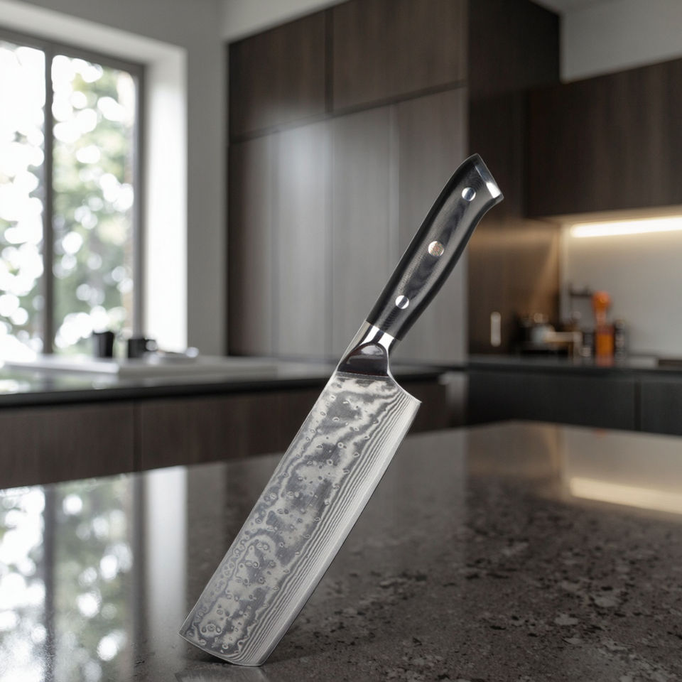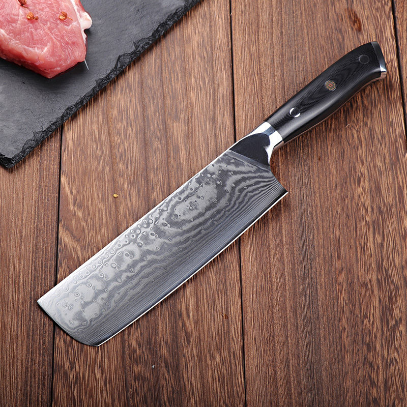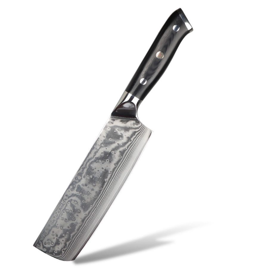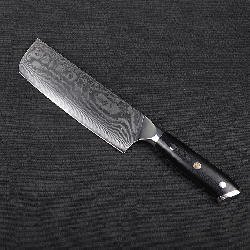 Couteau de cuisine professionnel japonais, couteau à découper avec manche noir G10, acier carbone Damas, couteau Nakiri