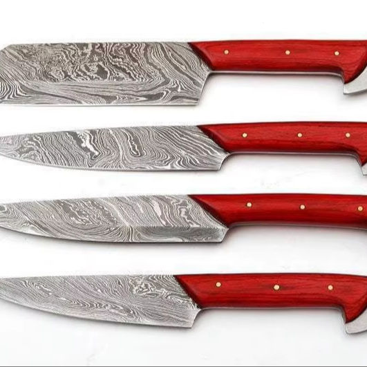 Ensemble de couteaux de cuisine japonais professionnels de haute qualité en acier Damas à 67 couches, manche en bois Pakka, cinq pièces, acier écologique