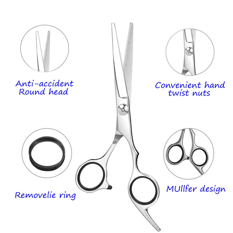 Ciseaux de barbier professionnels en acier inoxydable japonais avec lame tranchante, design pliable et logo personnalisé pour usage en salon - Marque privée