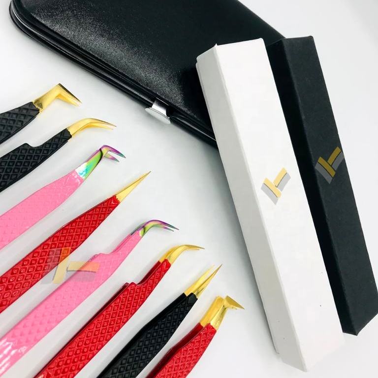 Pince à épiler professionnelle japonaise en acier inoxydable Extension de cils or pointu Logo personnalisé poudre couleur Volume Extension de cils