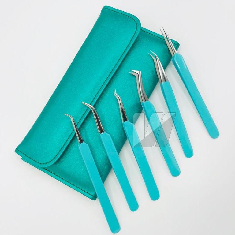 Professional Japanese Stainless Steel Eyelash Extension Tweezers Customized Logo Silver Pointed Sustainable Aqua Blue Color