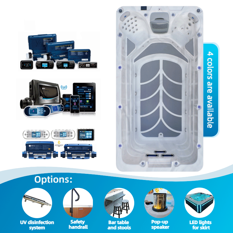 Piscine à dérive infinie professionnelle avec système à jets, spa résidentiel pour 3 personnes, bain à remous extérieur