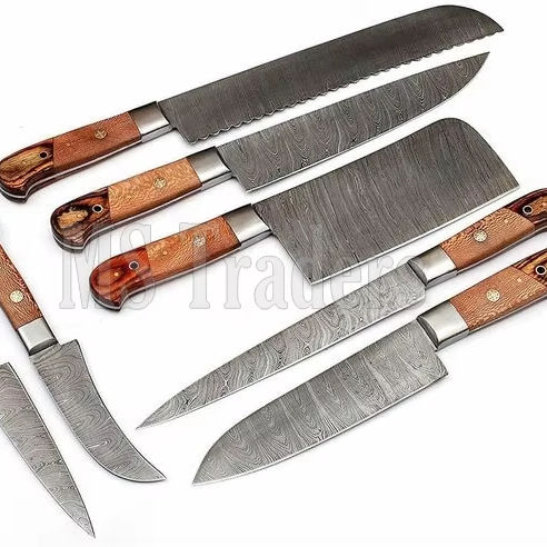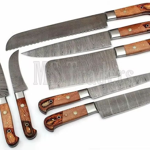 Ensemble de couteaux de chef en acier Damas de qualité supérieure, 7 pièces, fabrication artisanale, manche en bois, personnalisable OEM