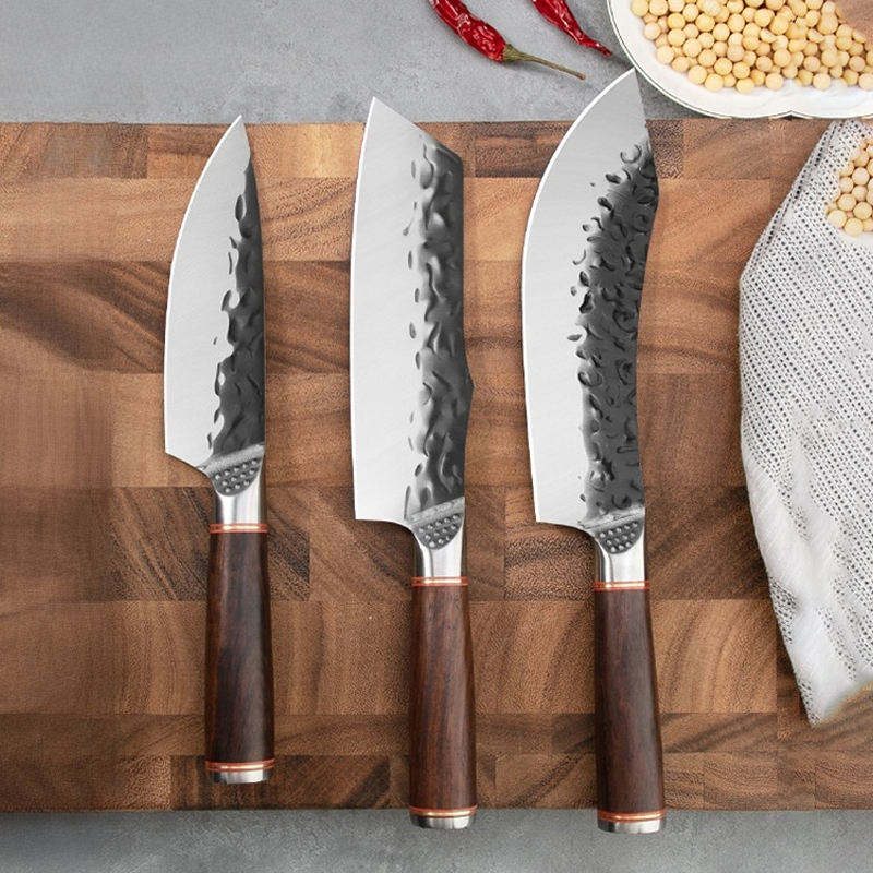 Ensemble de couteaux de boucher de chef de cuisine professionnel en acier 5CR15 fait à la main avec manche en bois et gaine en cuir pour viande grand couteau