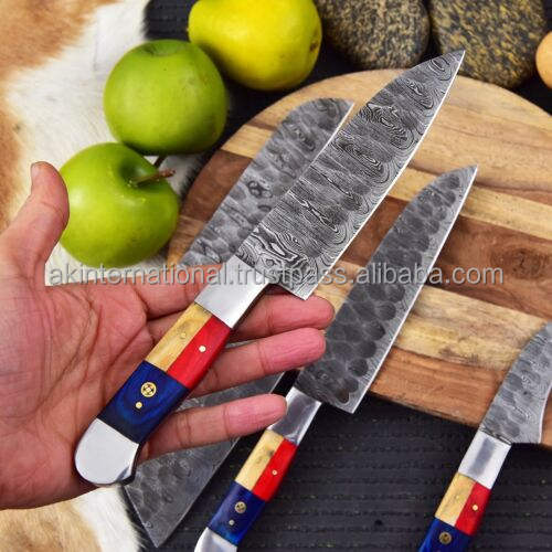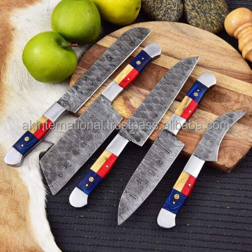 Couteaux de cuisine professionnels, fabrication sur mesure, acier Damas, 5 pièces de qualité professionnelle