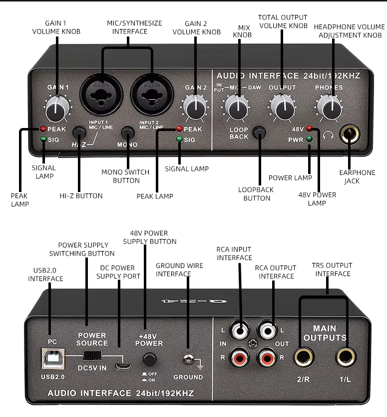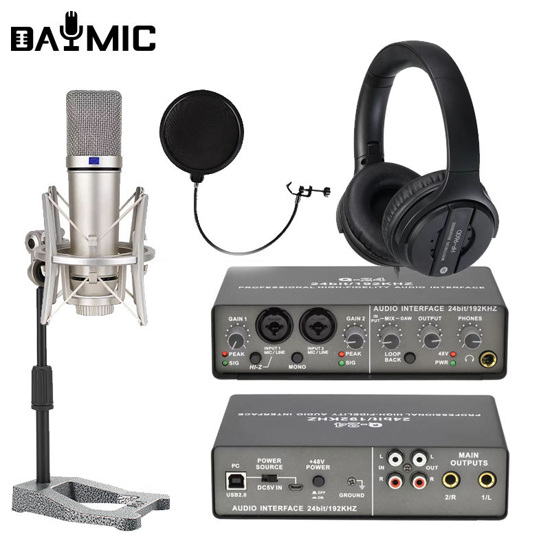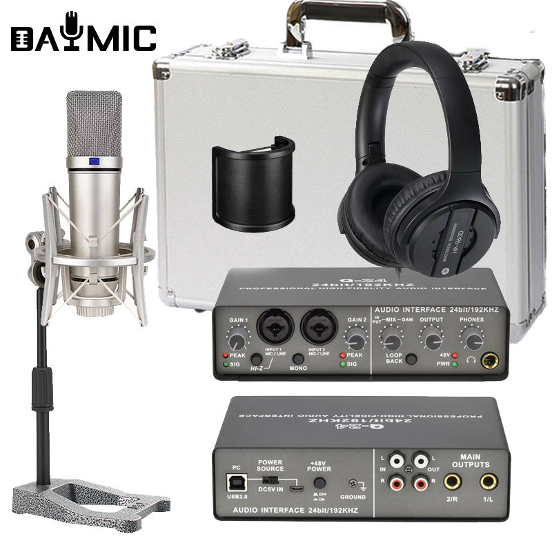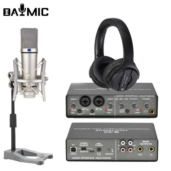 Professional Large Diaphragm Condenser Microphone Audio Interface for YouTube Gaming Tik Tok Live Broadcast Recording