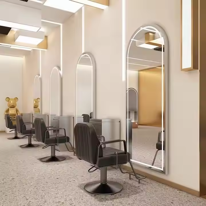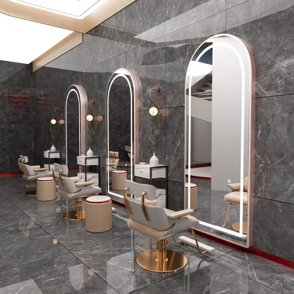Miroir de salon de coiffure de luxe de haute qualité avec éclairage LED, trois couleurs réglables, mobilier commercial pour salon de coiffure