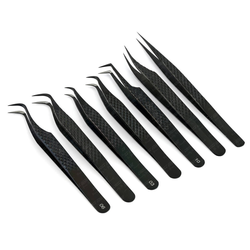 Pince à épiler professionnelle pour l'isolation des cils pour le sélecteur de ventilateur à extrémité crochet méga Volume