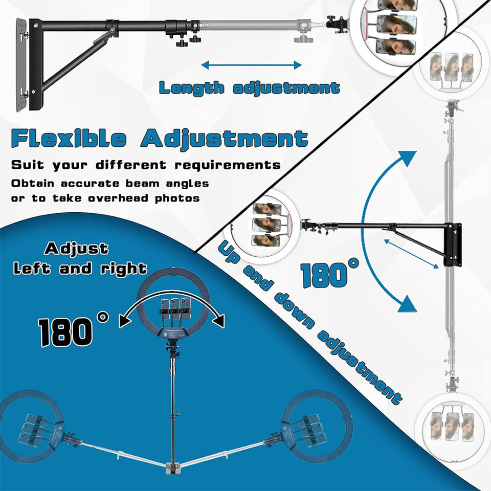 Anneau lumineux professionnel nouveau bras de flèche triangulaire à montage mural pour anneau lumineux 18 pouces led lumières de photographie de studio vidéo