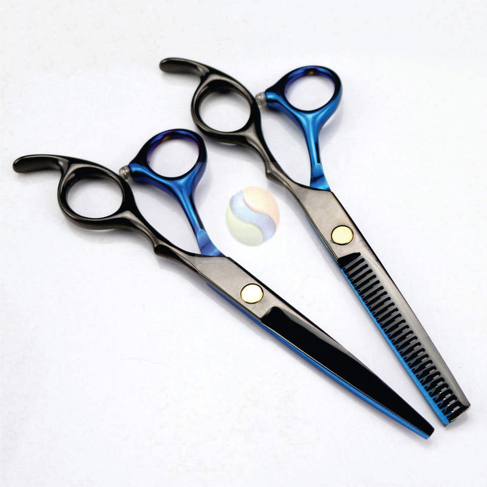 Kit de ciseaux de coiffure professionnel léger, édition premium noir et bleu, ultra-affûté, pour salon de coiffure