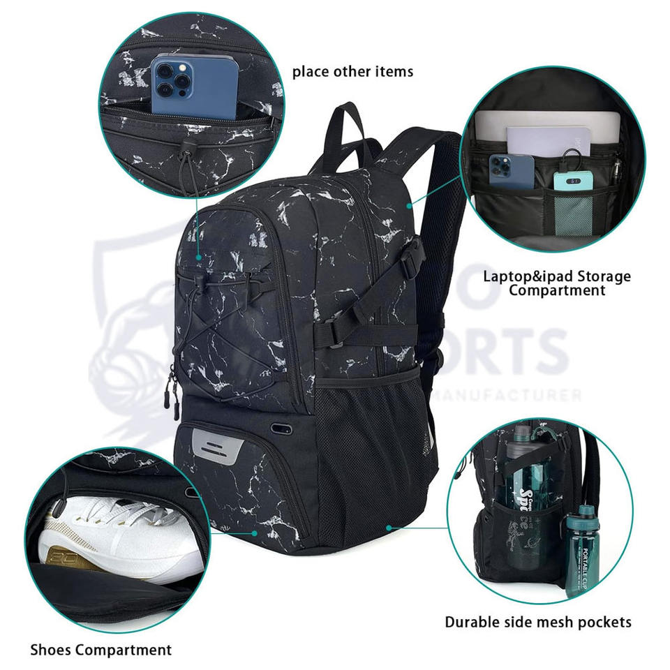 Sac de basket-ball en polyester durable, léger, confortable, respirant, fermeture éclair lisse, meilleur fournisseur, logo personnalisé