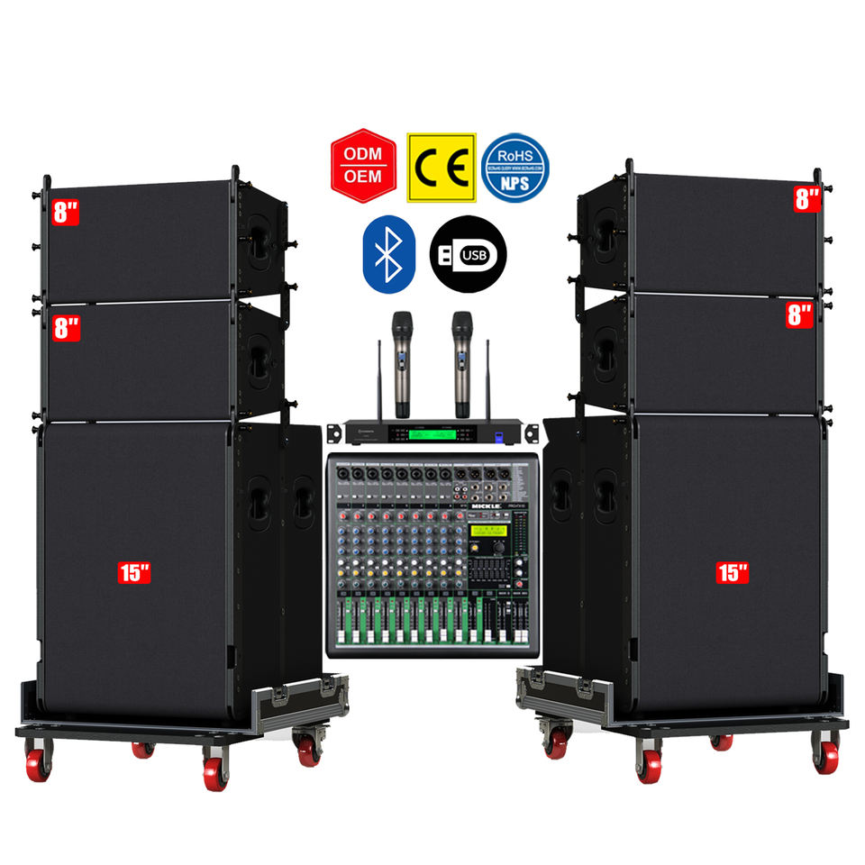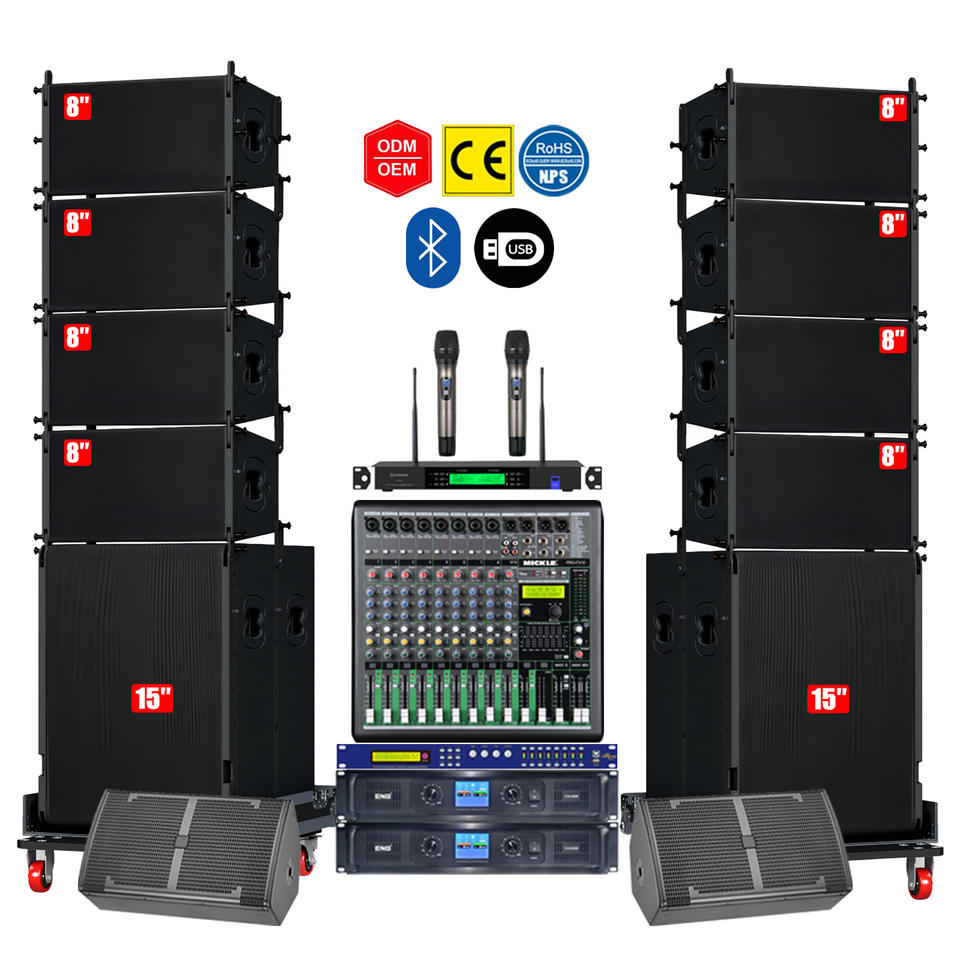 Système de sonorisation professionnel Line Array 8 enceintes de 15 pouces actives et amplifiées pour concerts, scènes, églises et événements
