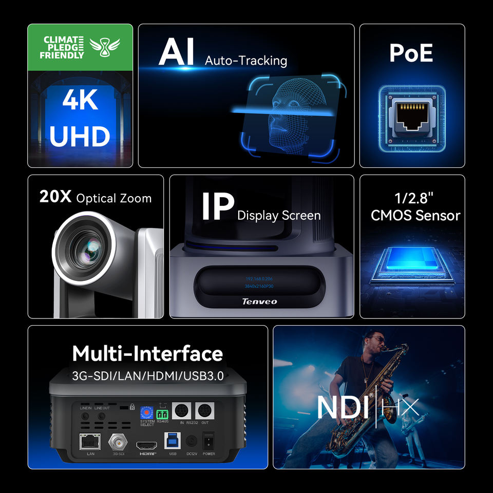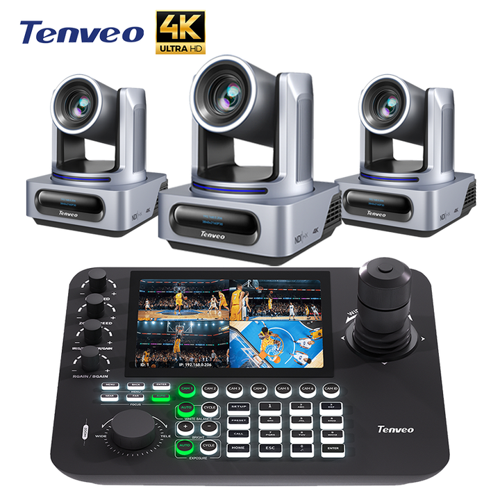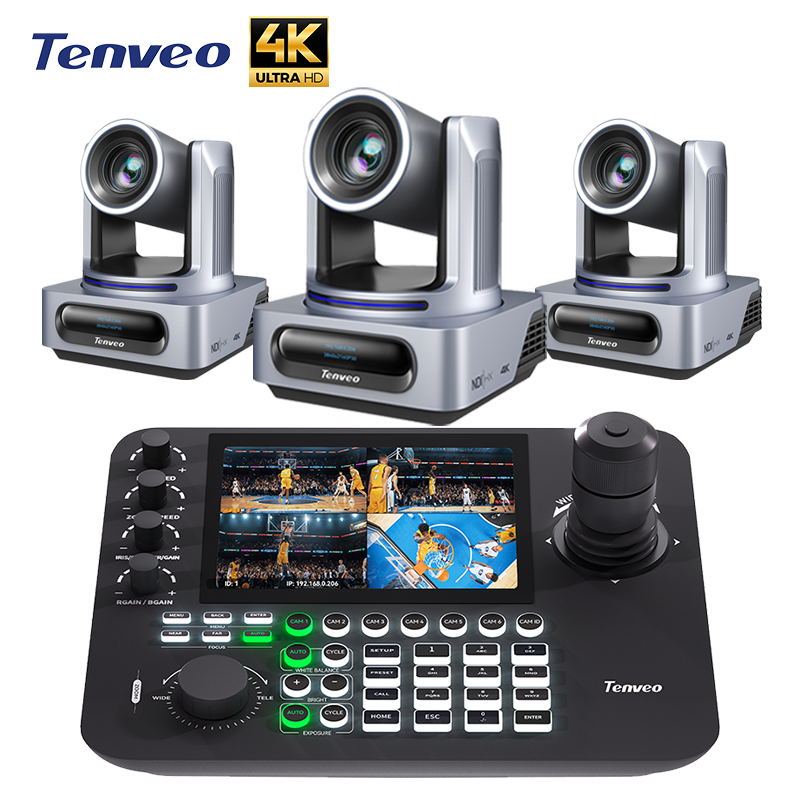 Système de diffusion en direct professionnel 4K avec caméra PTZ NDI POE 4K à zoom 12X/20X, suivi automatique IA et contrôleur joystick pour la diffusion