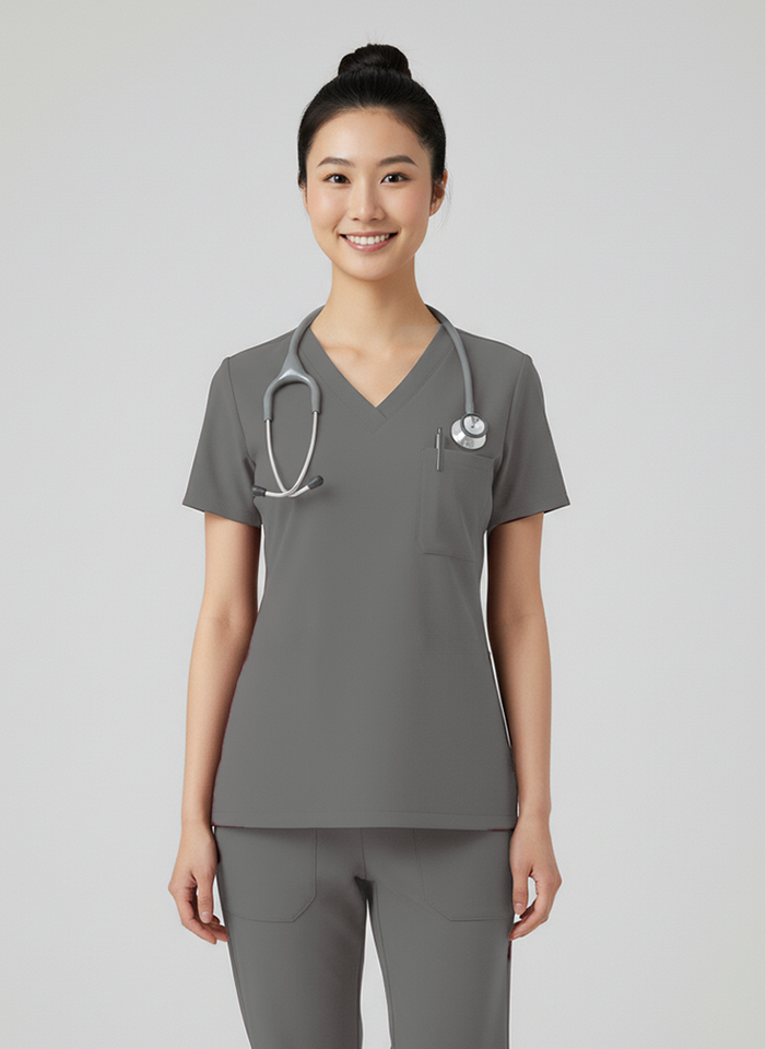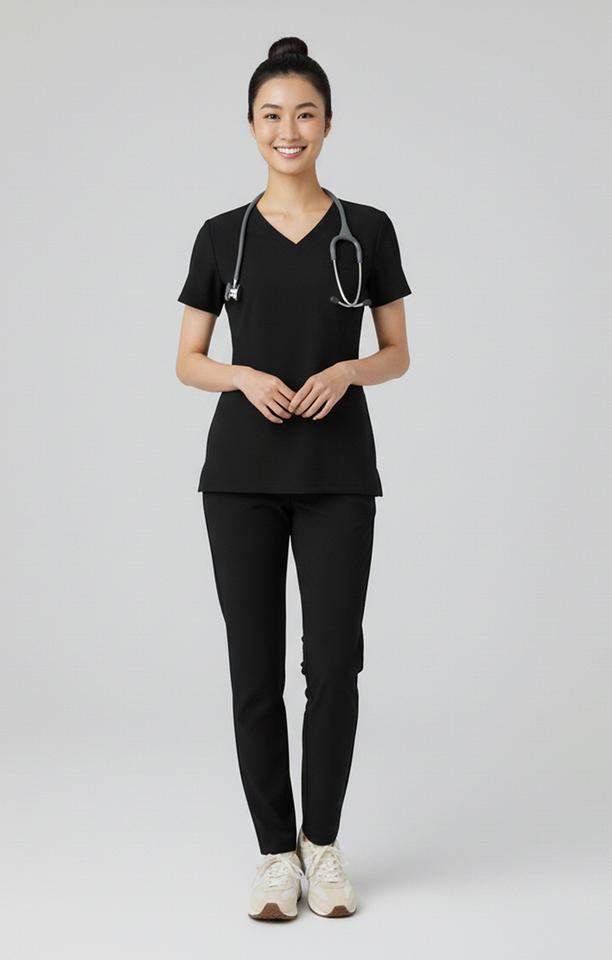 Look professionnel ensembles de gommage médicaux unisexe couleur unie col en V haut de gommage étiquettes personnalisées ensemble de gommage d'hôpital en coton Spandex