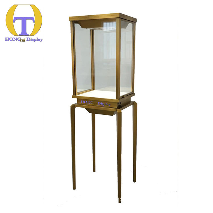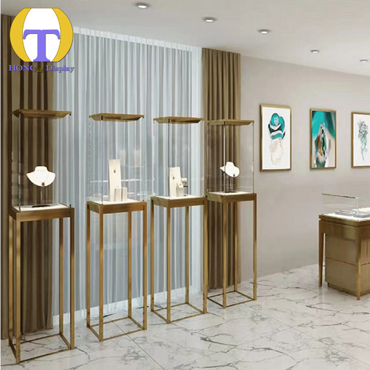 Professional Luxury Stainless Steel Boutique Cabinet LED Down Light Jewel Shop Display Armoire Glass Jewelry Showcase