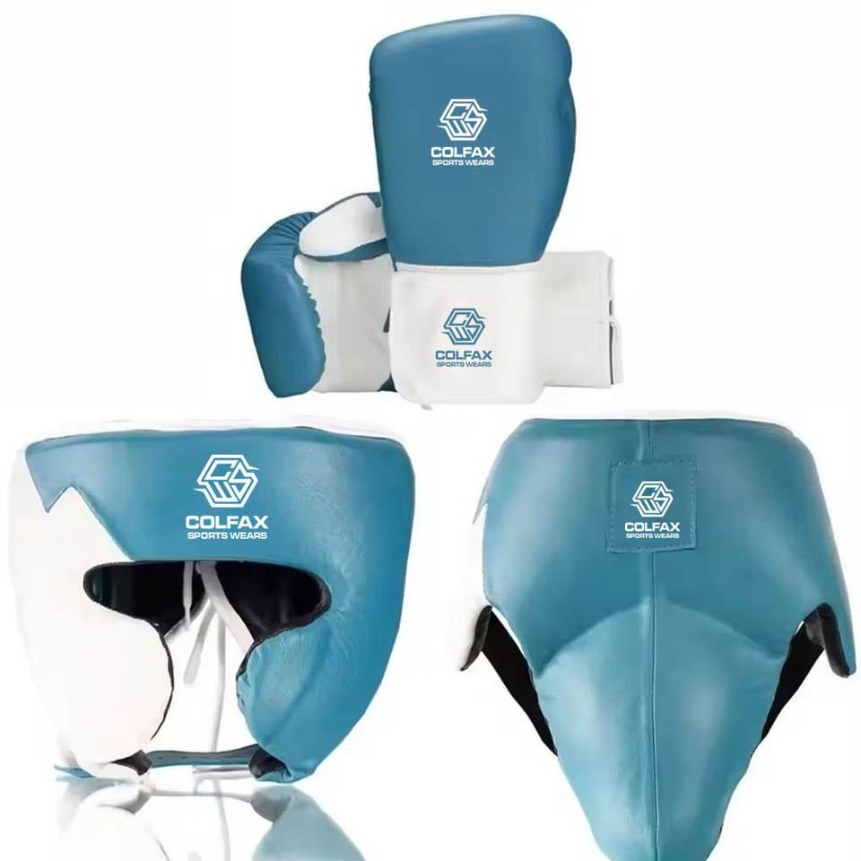Ensemble de boxe professionnel en cuir de haute qualité avec casque réglable, gants respirants et confortables pour l'entraînement