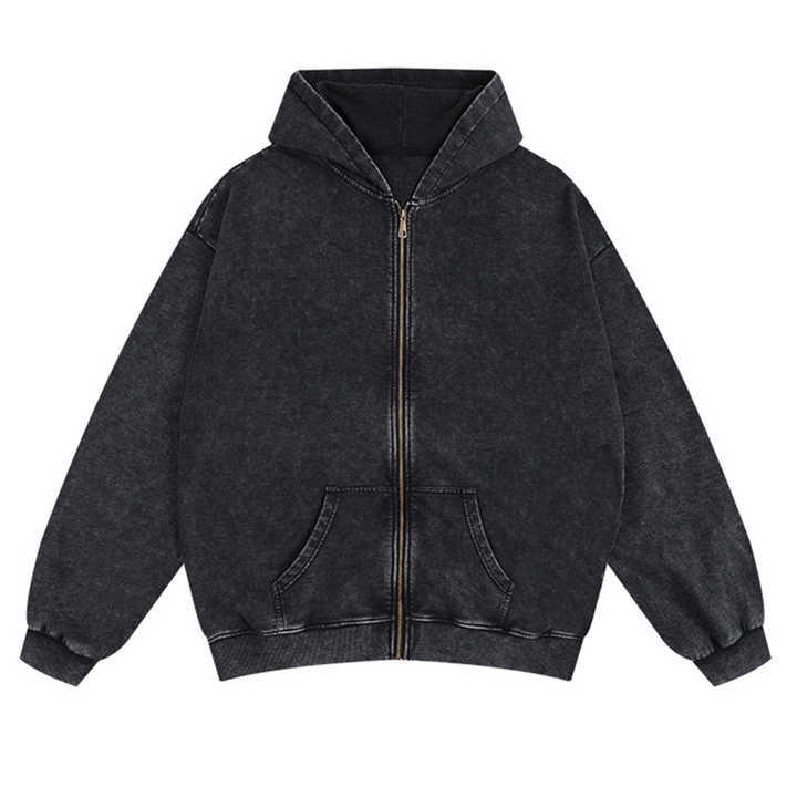 Sweat à capuche zippé pour homme, coupe classique, 100% coton, doublure polaire, écologique, avec logo personnalisé brodé, effet délavé, idéal pour l'hiver