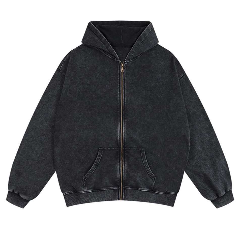 Sweat-shirts à capuche surdimensionnés pour hommes avec logo personnalisé, lavage à l'acide, fermeture éclair, 100% coton, hiver, écologiques, respirants