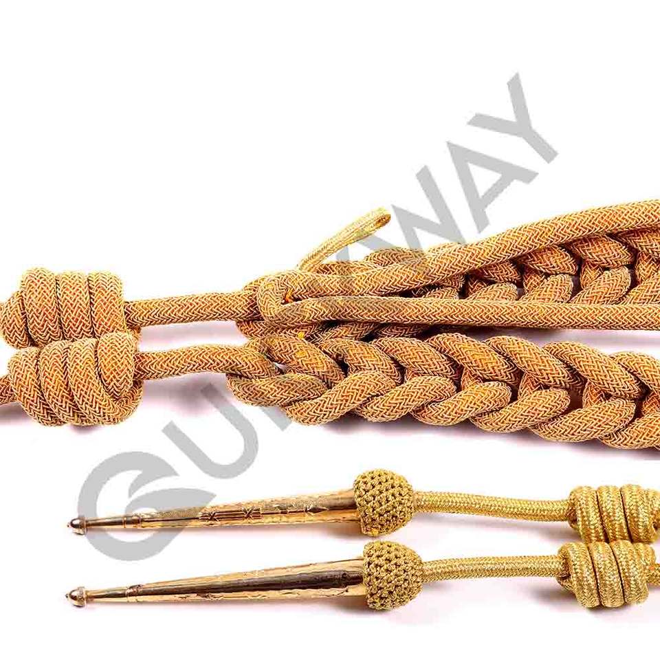 Accessoires d'uniforme Aiguillette en or de qualité supérieure fabriqués par des professionnels Aiguillette en Mylar avec deux pointes en or