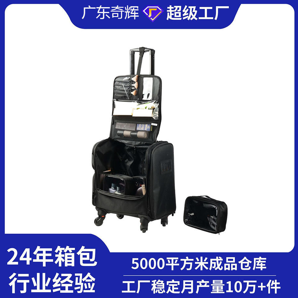 Valise de maquillage professionnelle grande capacité avec fermeture éclair, couleur noire unie, poignée de transport