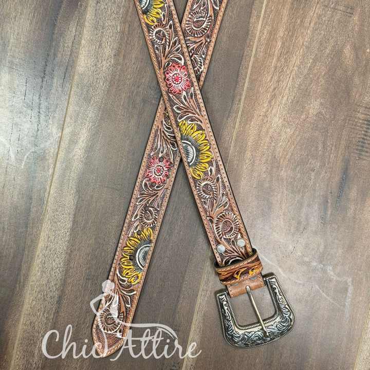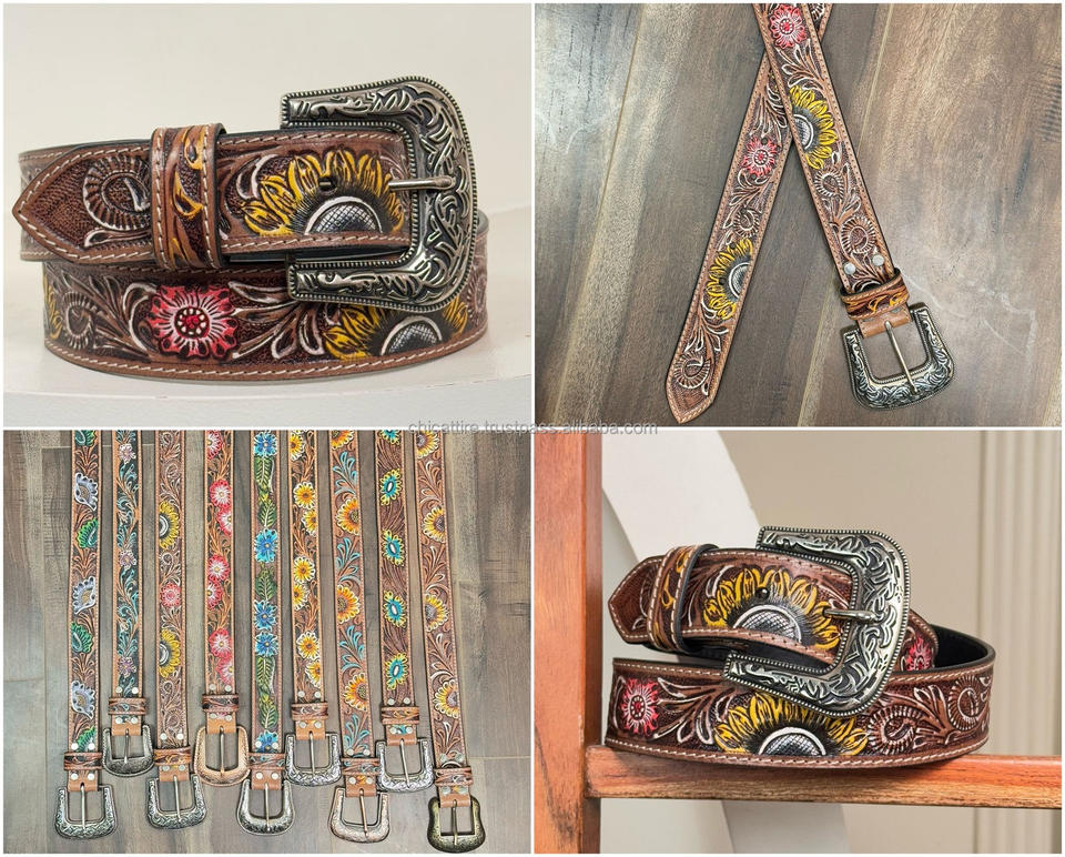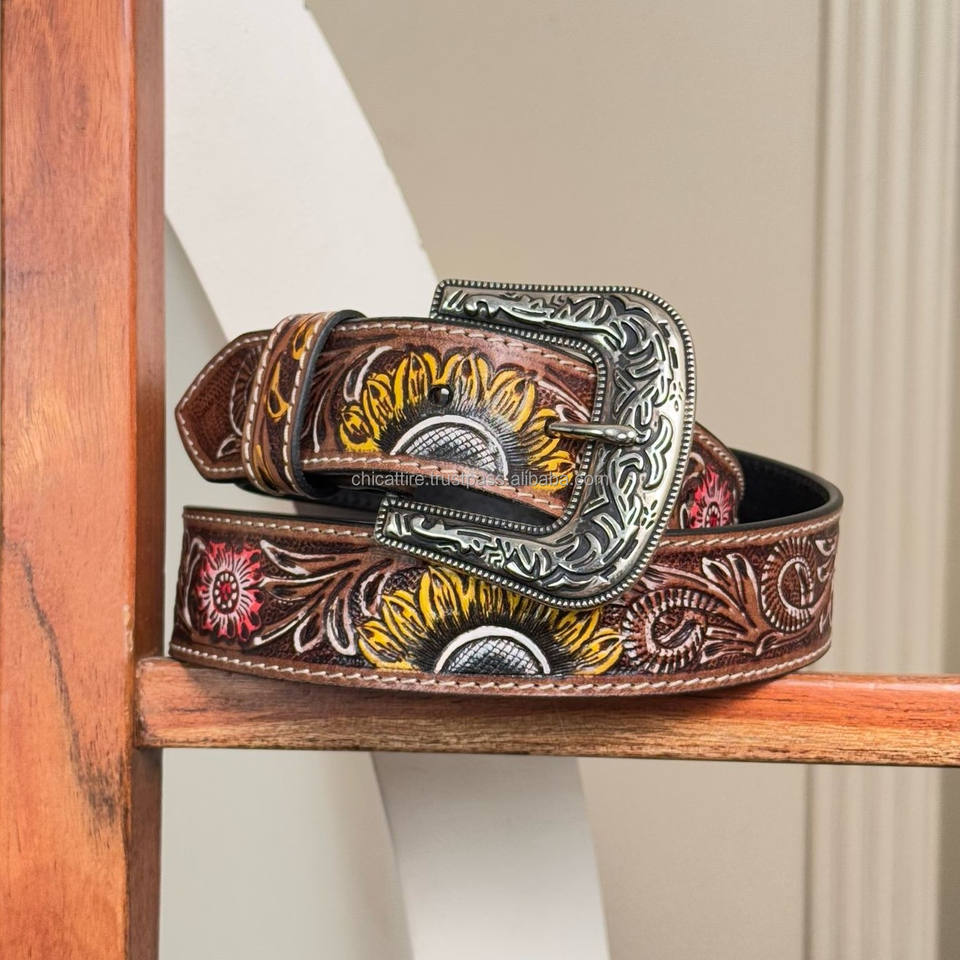 Ceinture en cuir de vachette véritable usiné à la main