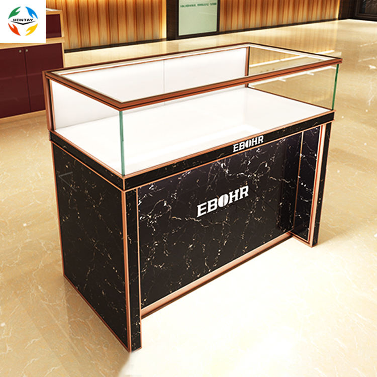 Comptoir de présentation de montres et de bijoux de fabrication professionnelle avec éclairage LED, construction durable en aluminium et verre trempé