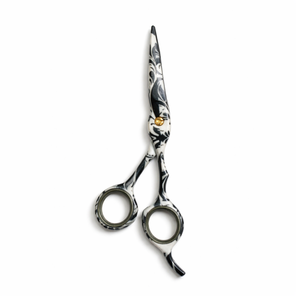 Ciseaux de barbier professionnels à finition marbrée, 6 pouces, tranchants, pour droitiers | Ciseaux de coiffure en acier inoxydable pour salons et barbiers