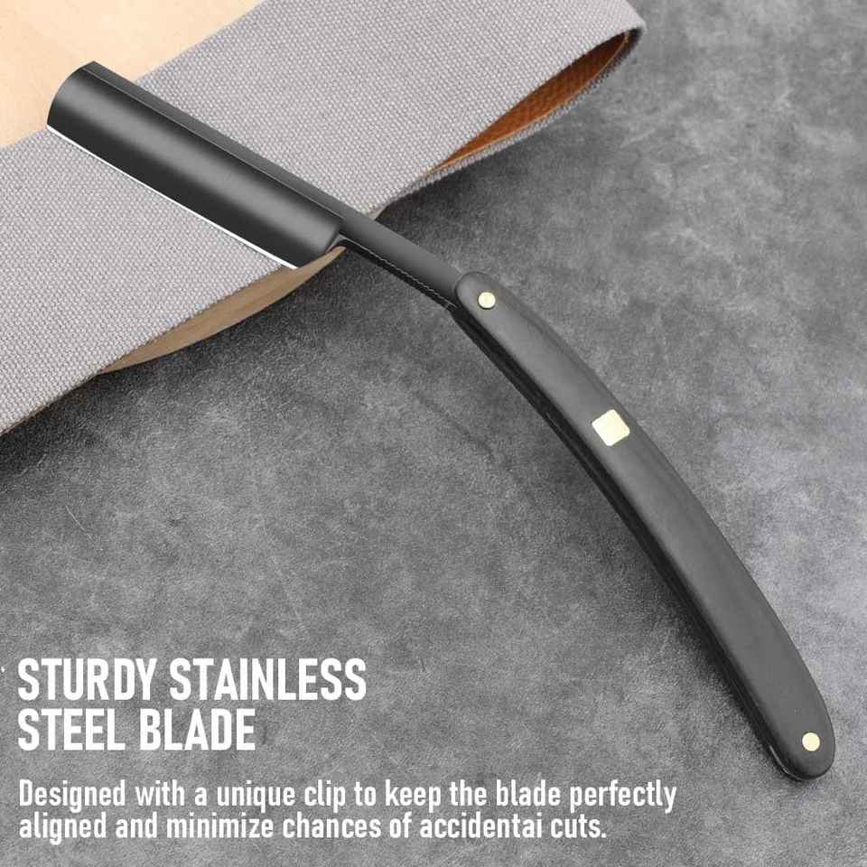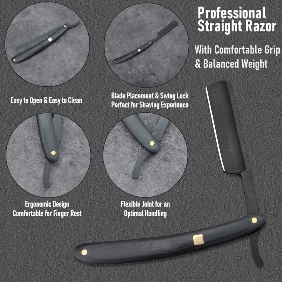Outil de barbier professionnel pour hommes en acier au carbone rasoir à bord droit manche en bois en acier inoxydable prêt à raser pour le toilettage à la maison
