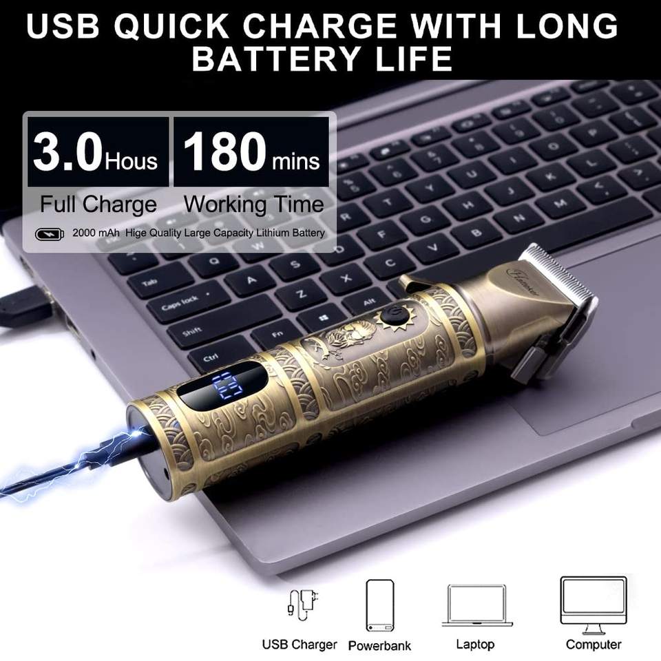 Tondeuse à cheveux professionnelle sans fil rechargeable pour hommes, rasoir électrique à lame en T, kit de toilettage pour barbier, source d'alimentation LED, batterie