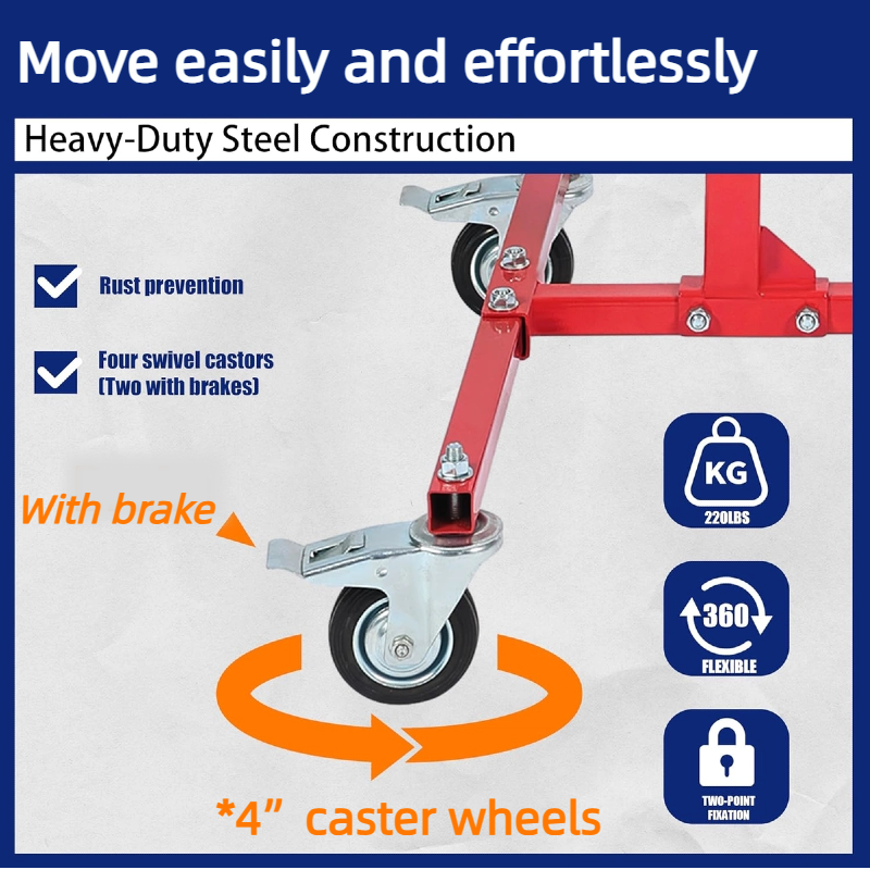 Cric manuel professionnel en métal avec roues pour portes de voiture, garage et atelier