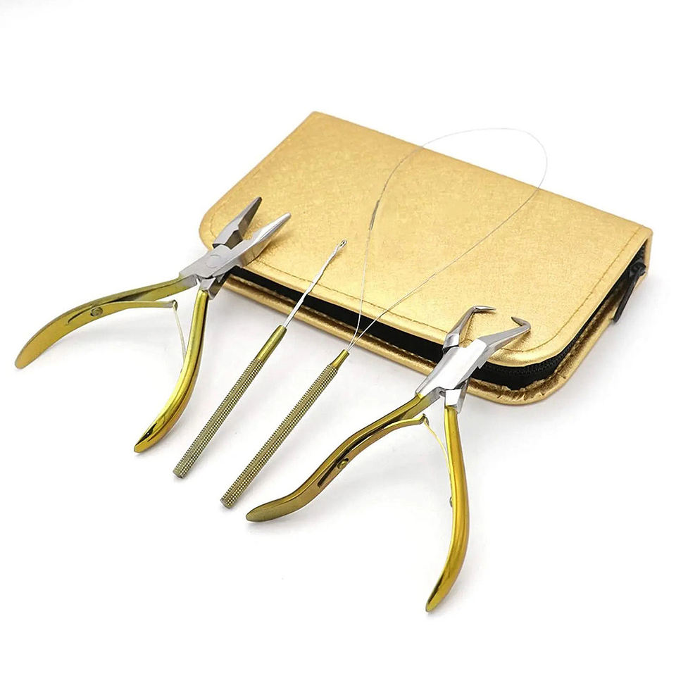 Kit professionnel de pinces pour extensions de cheveux à micro-anneaux avec aiguille à boucle et outils d'application de perles pour usage en salon