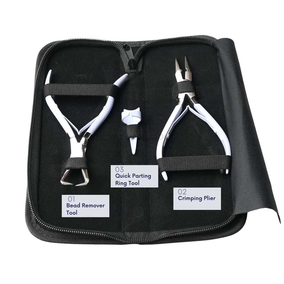 Nom du produit:Kit d'outils pour extensions de cheveux à microbilles avec pince à sertir flexible