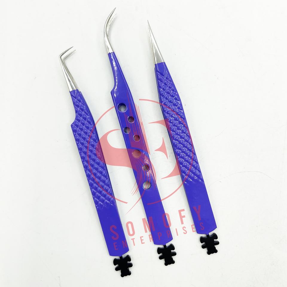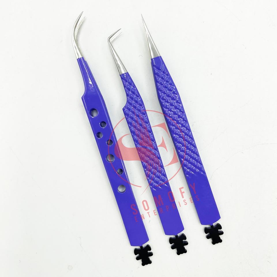 Ensemble de pincettes à cils artisanales à pointe en microfibre professionnelle pince à épiler d'extension de Volume en acier inoxydable conception de fond d'ours durable