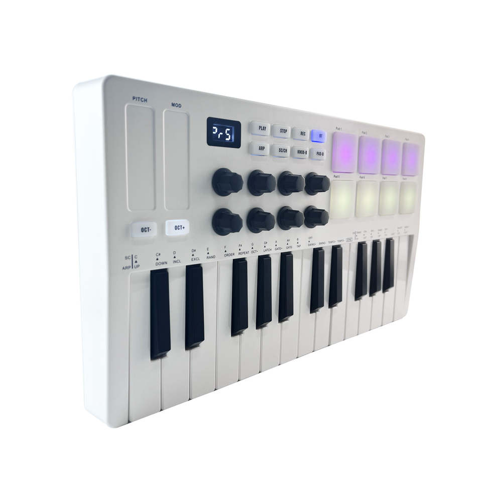Contrôleur de clavier professionnel mini 25 midi avec Pads de batterie rétroéclairés 8 RGB 8 boutons