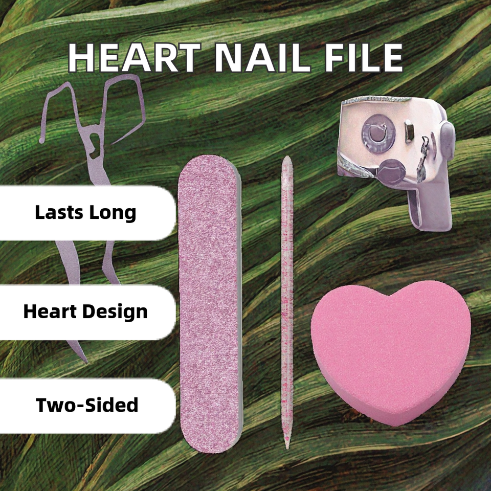 Lime à ongles professionnelle miniature en forme de cœur double face avec logo personnalisé, fournitures pour les ongles avec bloc de curd en éponge pour le soin des ongles